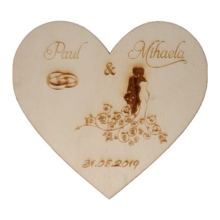 Cutie de verighete, Personalizata, Inima, Lemn Natur, CTV008