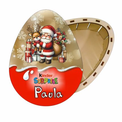 Cutie cadou de Craciun Ou Kinder Surprise, Personalizata, Lemn, Multicolor, CCDB037