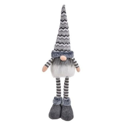 Decoratiune de Craciun, Cizmulita, Gnome, Tricotat, Gri, 38cm, DCJ333