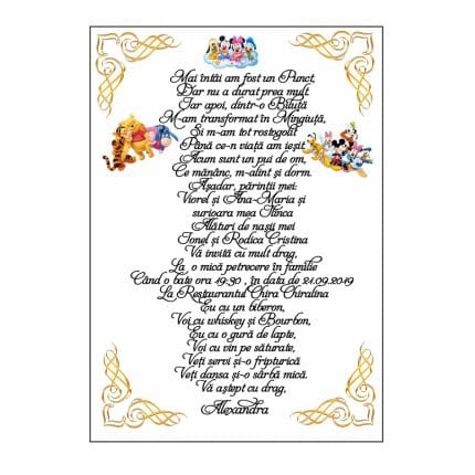 Invitatie botez, Model IC12 , Winnie cu Mickey, Format A5