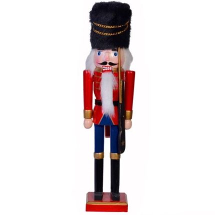 Decoratiune de Craciun, Soldat, Lemn, Uniforma, Rosu, Albastru, 38cm, DCJ358