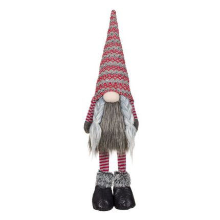 Decoratiune de Craciun, Figurina, Gnome, de Craciun, Codite, Caciula, Rosie, Gri, 61cm, DCJ180