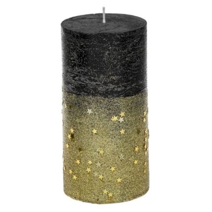 Decoratiune de Craciun, Lumanare, Negru, Stele Aurii, 7x15cm, DCJ294