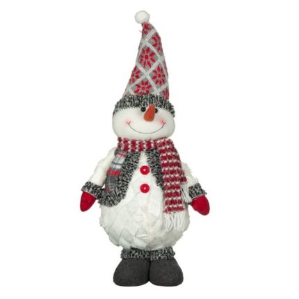Decoratiune de Craciun, Figura, Om de Zapada, Blana, Alba, Vesta, cu Carouri, 61cm, DCJ159