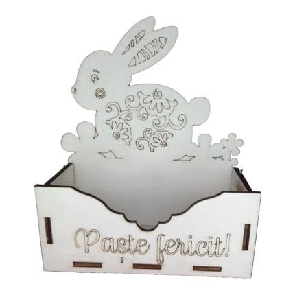 Cutie Aranjamente Florale Lemn Model Iepure Paste Fericit P09