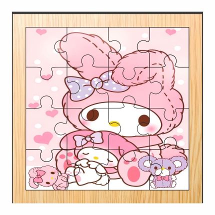Puzzle din lemn, My Melody, 16 piese, Multicolor, 17×17 cm, PDUV049