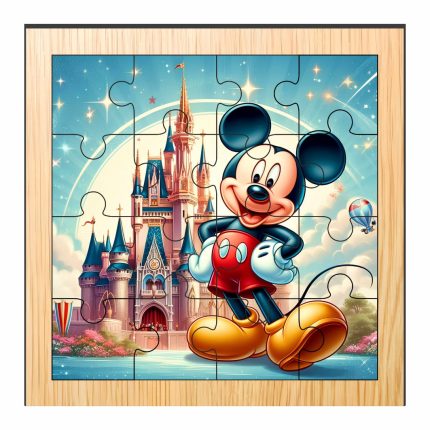 Puzzle din lemn, Mickey Mouse, 16 piese, Multicolor, 17×17 cm, PDUV030