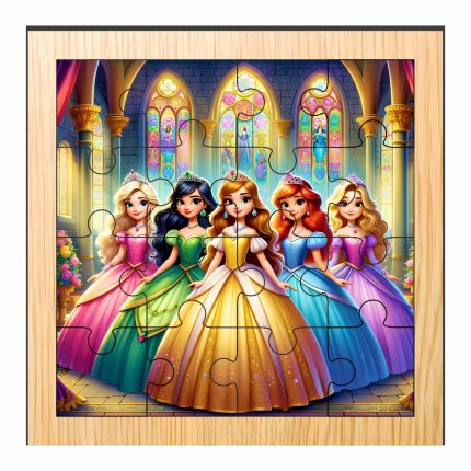 Puzzle din lemn, Printese, 16 piese, Multicolor, 17×17 cm, PDUV010