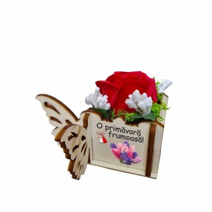 Martisor in Cutie, Trandafir de Sapun, Licheni, O primavara frumoasa, 9,5×9,5 cm, Rosu, CMUV021