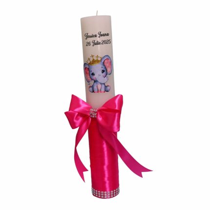 Lumanare Botez, Personalizata, Elefantica, Roz, 35 cm, LMB017