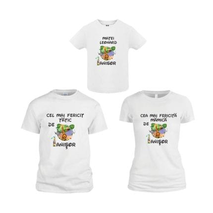 Set 3 tricouri pentru aniversarea de 1 an, taiere mot, Safari, Bumbac, Alb, TM24