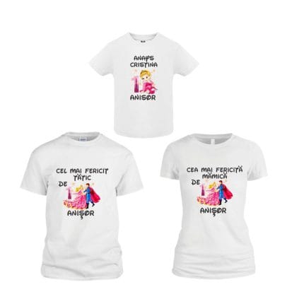 Set 3 tricouri pentru aniversarea de 1 an, taiere mot, Fetita-Bebe, Bumbac, Alb, TM36