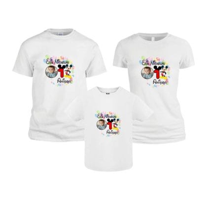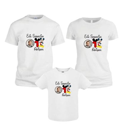 Set 3 tricouri pentru aniversarea de 1 an, taiere mot, Mickey Mouse, Bumbac, Alb, TM12