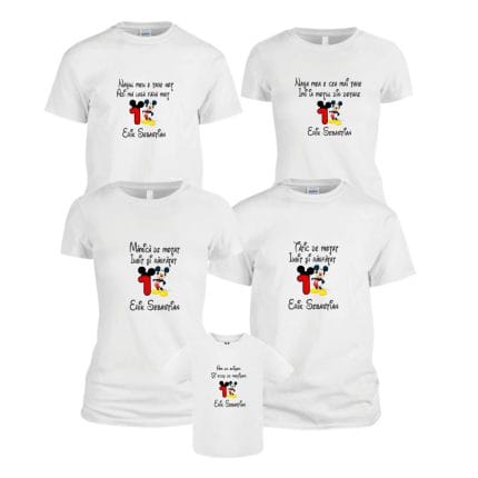 Set 3 tricouri pentru aniversarea de 1 an, taiere mot, Mickey Mouse, Bumbac, Alb, TM11
