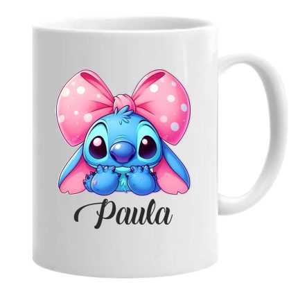 Cana personalizata, Alba, Stitch, 350 ml, CDUV004