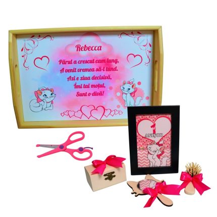 Set Mot Personalizat, Pisica Marrie, 6 Piese, Lemn, Roz, 20x30cm, SMD129