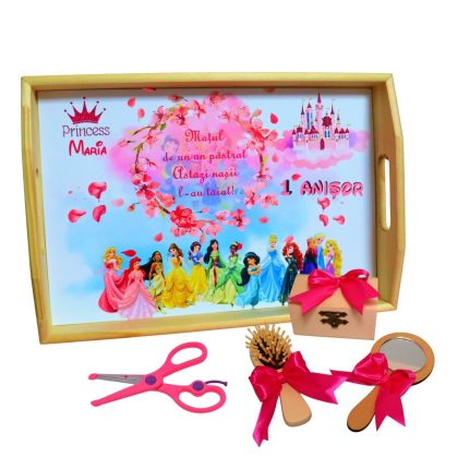 Set Mot Personalizat, Printesele Disney, 5 Piese, Lemn, Roz, 20x30cm, SMD124