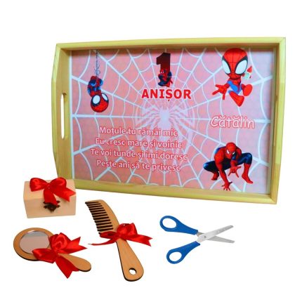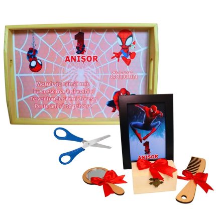 Set Mot Personalizat, Spider Man, 5 Piese, Lemn, Rosu, 20x30cm, SMD128