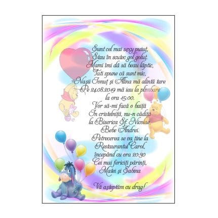 Invitatie botez, Model IC14 , Winnie the pooh, Format A5