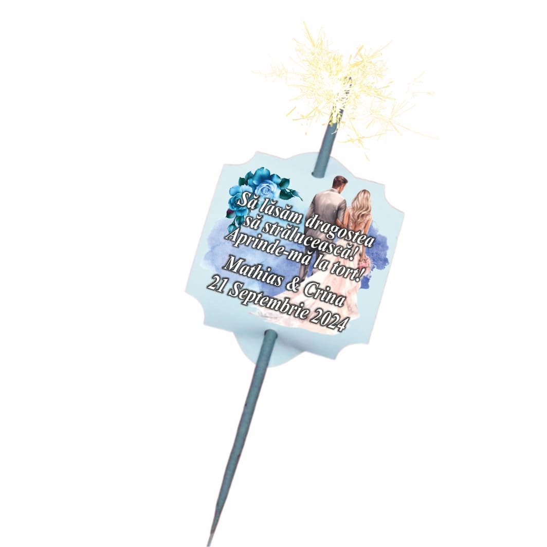 Artificie de Mana Nunta, Aprinde-ma la tort, Personalizat, Albastru, 25cm, AN010