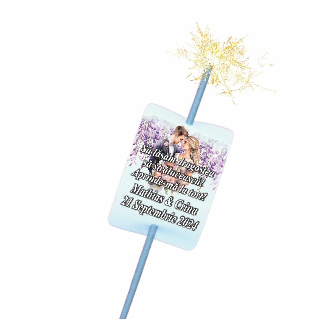 Artificie de Mana Nunta, Aprinde-ma la tort, Personalizat, Mov, 25cm, AN07