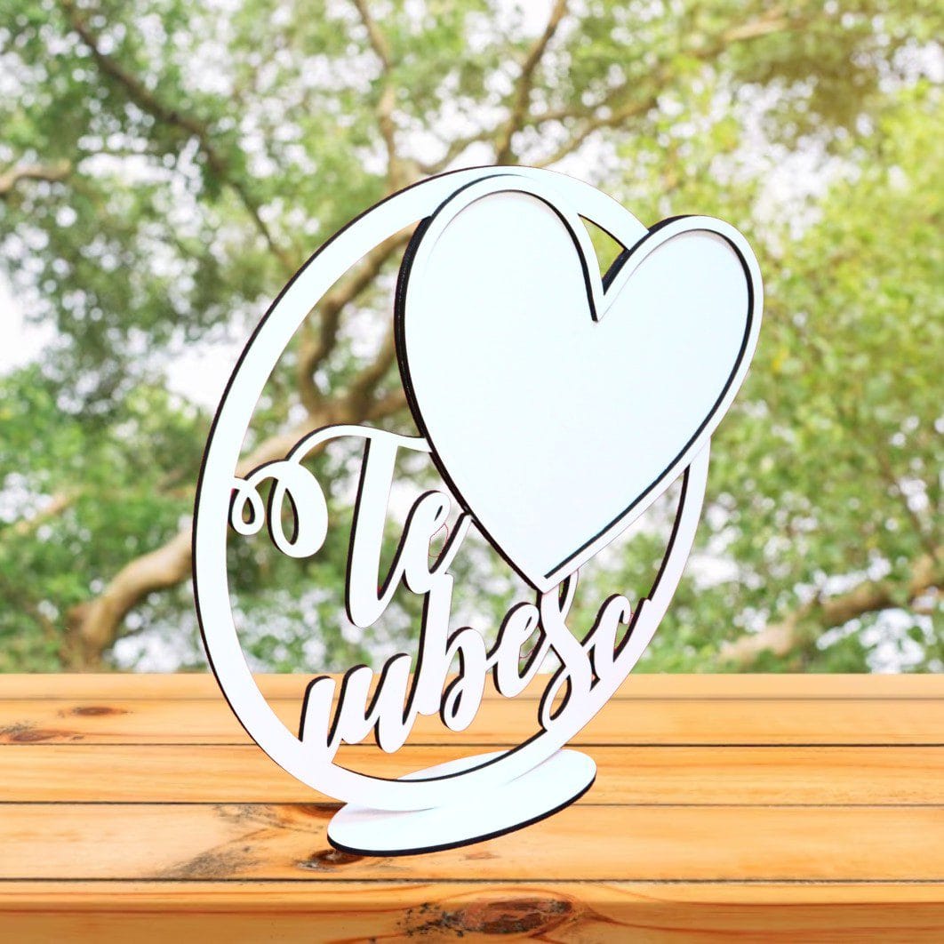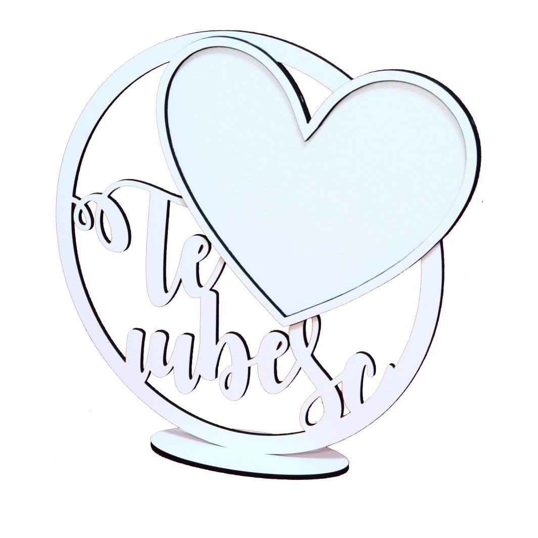 Baza Licheni, Inima, Te Iubesc, Lemn, Alb, 20cm, BL021
