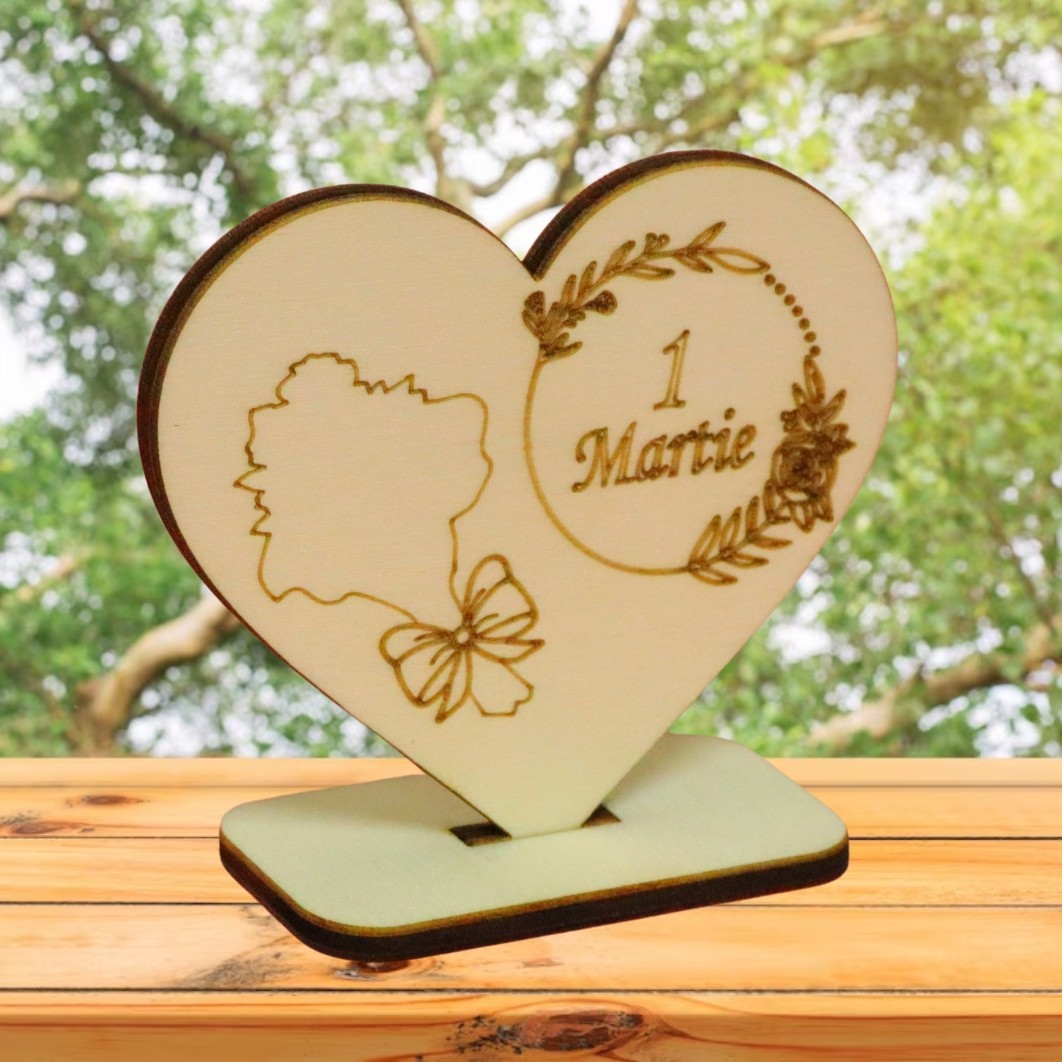 Aspectul natural al lemnului permite decorarea armonioasă cu flori uscate, șnururi tradiționale alb-roșii, panglici, mărgele sau alte elemente decorative specifice primăverii. Spre deosebire de mărțișoarele clasice, această bază mărțișor inimă poate fi păstrată ulterior ca mic obiect decorativ, devenind o amintire plăcută de primăvară.