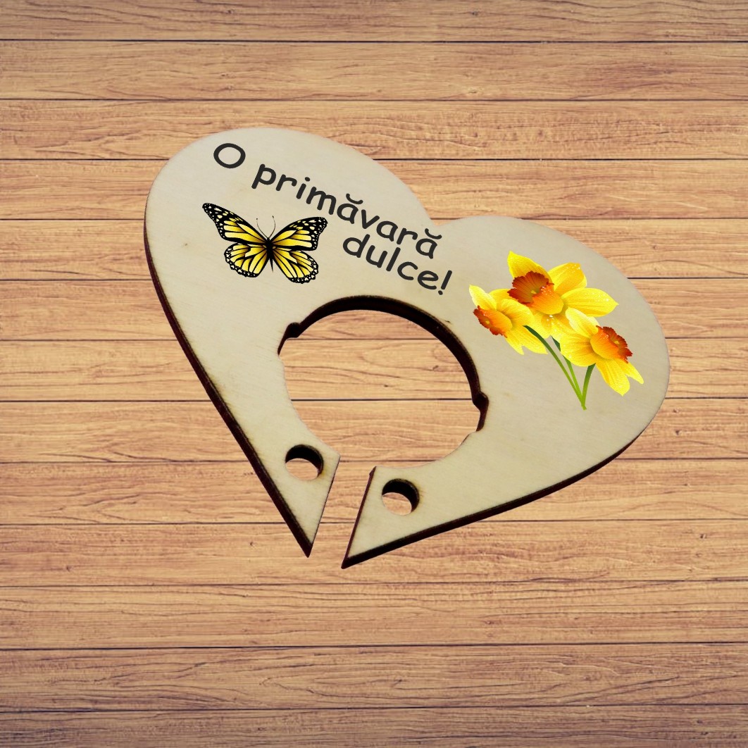Această bază mărțișor inimă din lemn natur este un suport decorativ special, creat pentru realizarea unor mărțișoare originale, cu tematică de primăvară și un mesaj dulce pentru persoanele dragi.