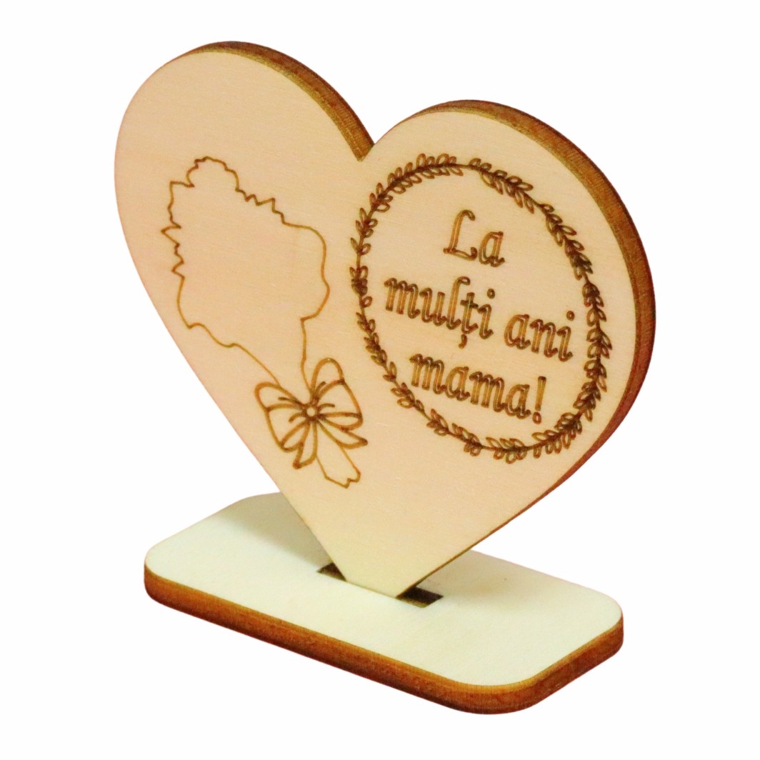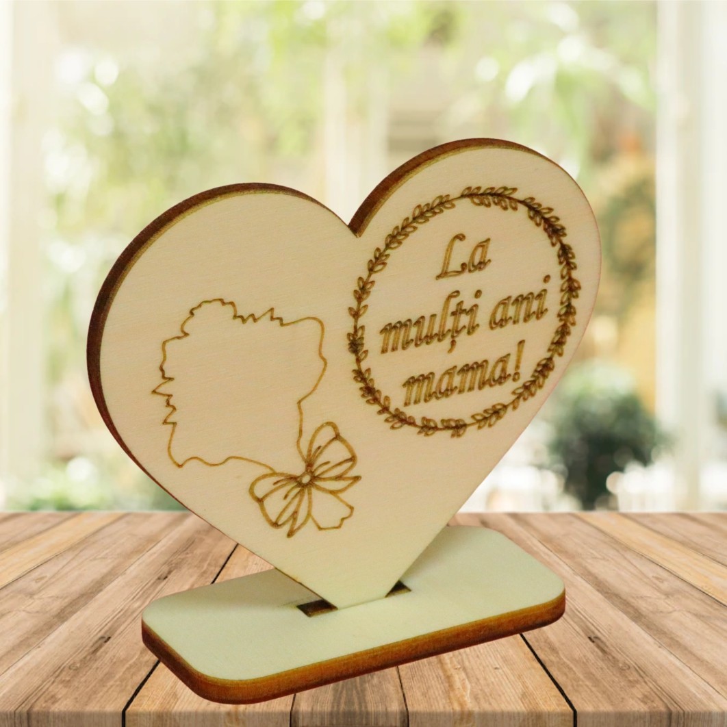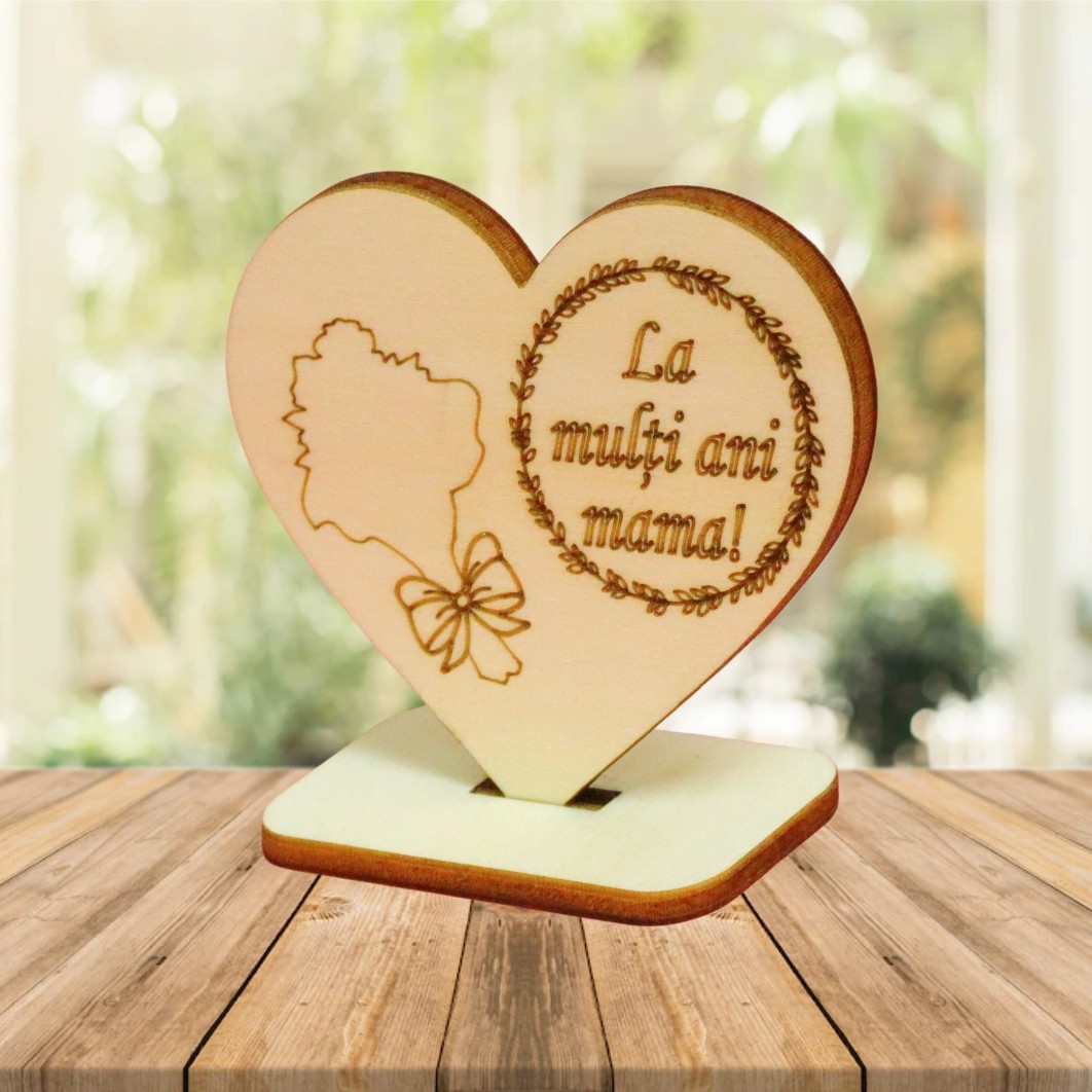Această bază mărțișor inimă din lemn natur este un suport decorativ special, conceput pentru realizarea mărțișoarelor handmade cu flori uscate, dedicate mamei, cu mesajul emoționant „La mulți ani mama”.