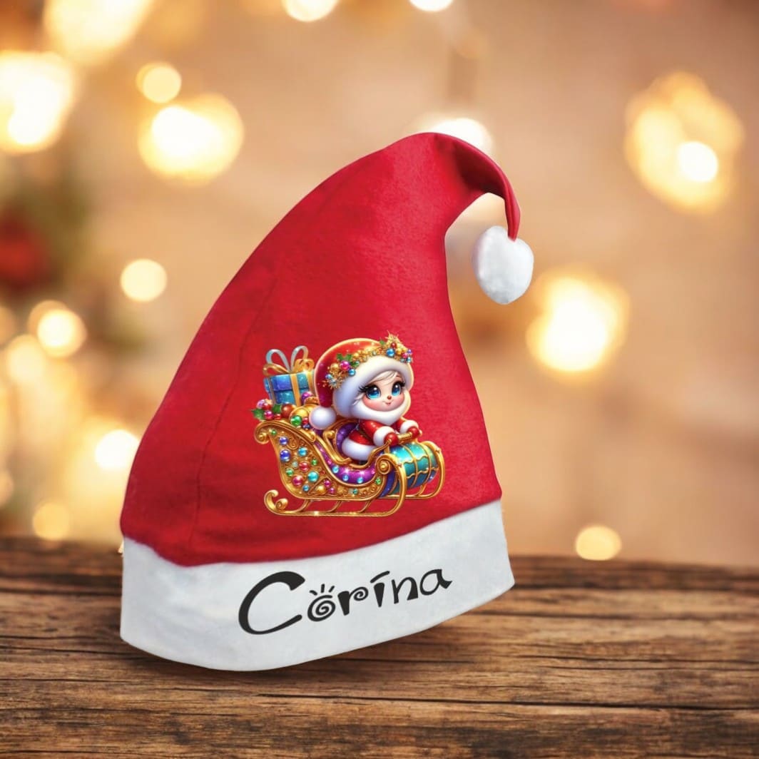 Caciula Mos Craciun, Personalizata – Fetita, Sanie, 42 cm (CMC005)
