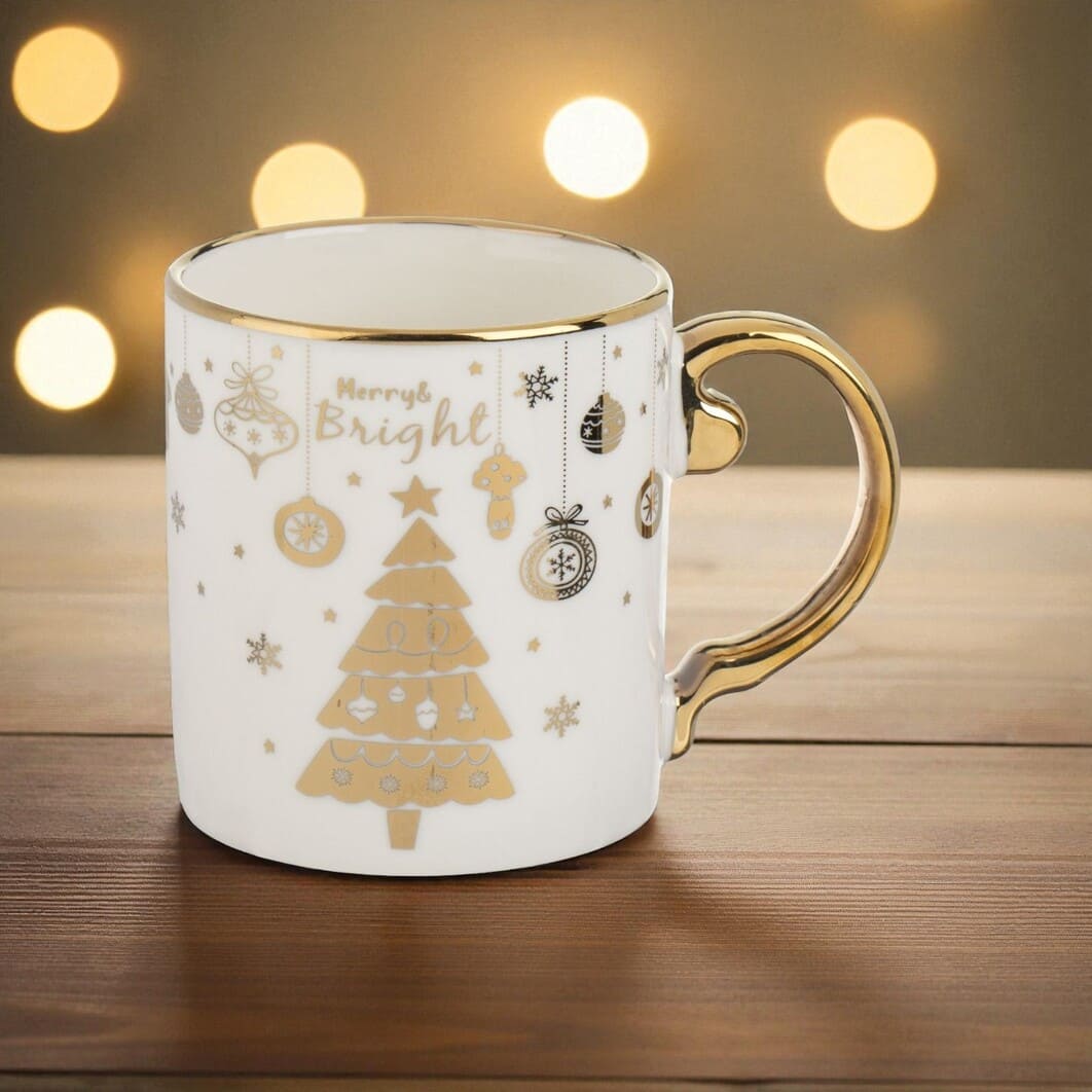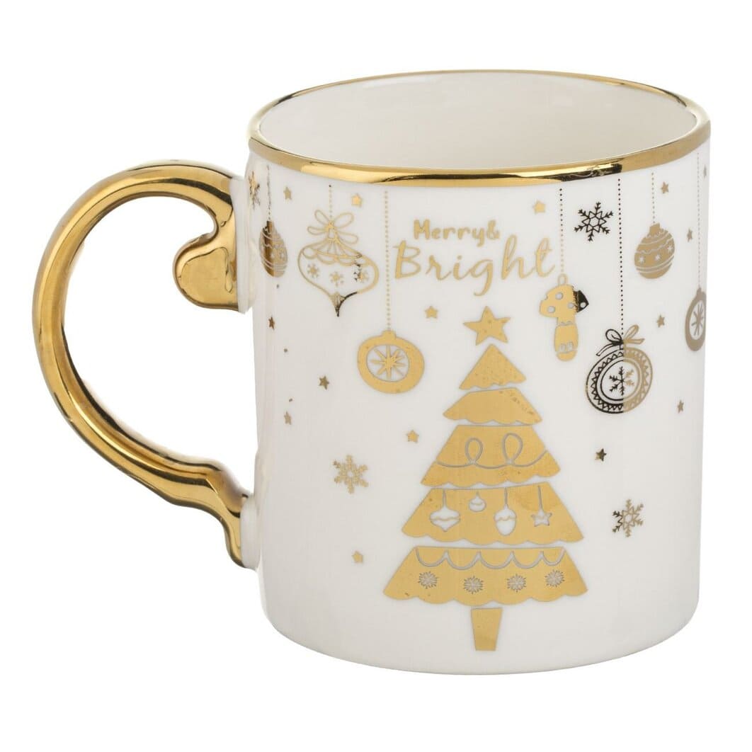 Cana Craciun – Model Brad si Globuri Aurii, Ceramica, 355ml (DCJ523)