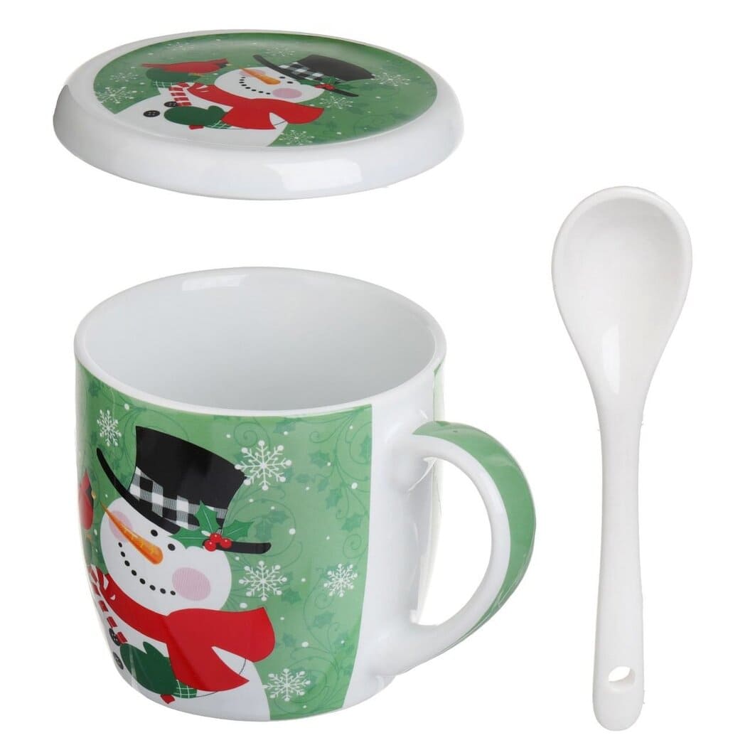 Cana Craciun cu Capac si Lingurita Om Zapada – Set 3 Piese, 340ml (DCJ508)