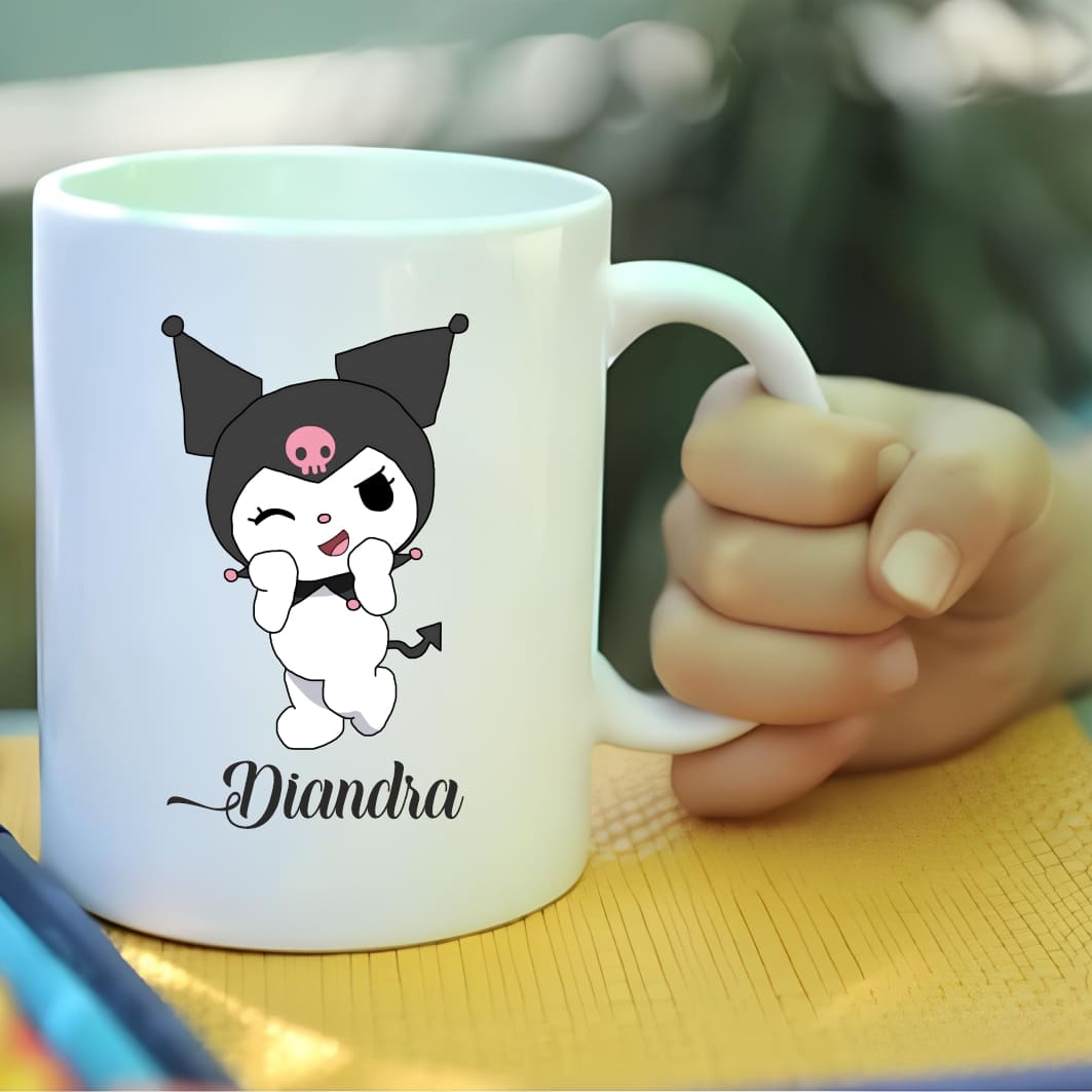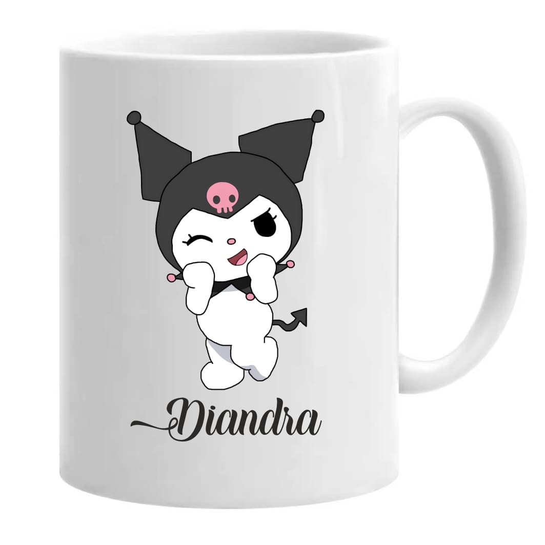 Cana personalizata, Alba, Kuromi, 350 ml, CDUV038
