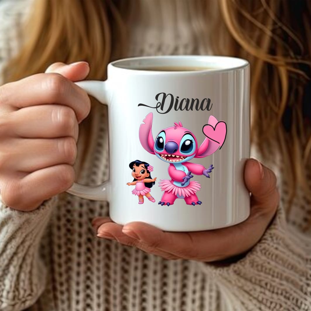 Cana personalizata, Alba, Stitch, 350 ml, CDUV036
