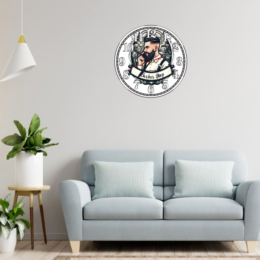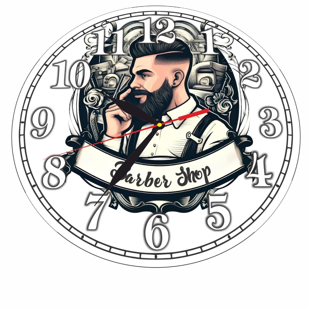 Ceas Barber Shop, Personalizat, Lemn, 40 cm, CMSUV020