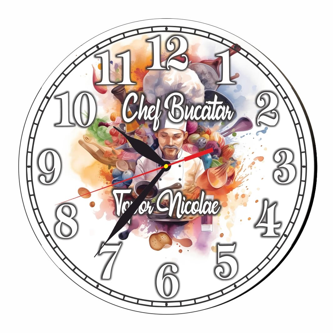 Ceas Bucatar, Personalizat, Lemn, 40 cm, CMSUV060