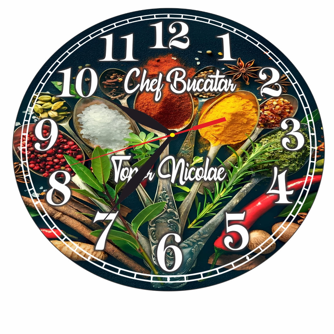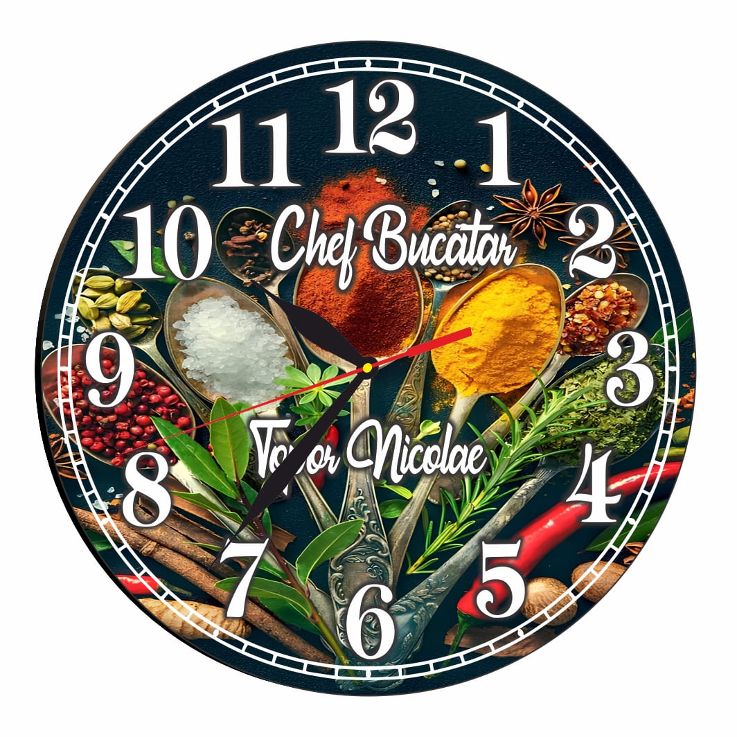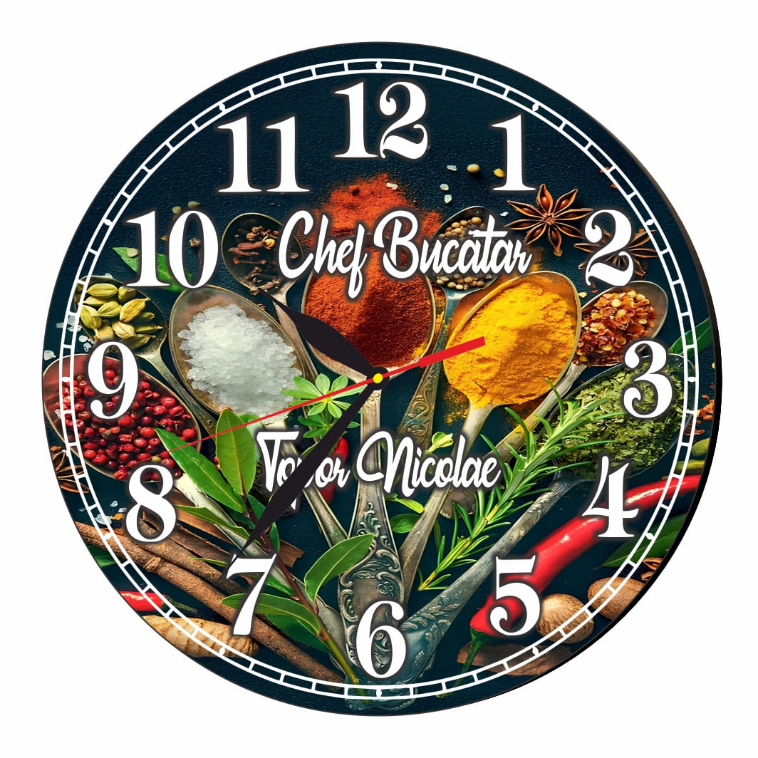 Ceas Bucatar, Personalizat, Lemn, 40 cm, CMSUV062