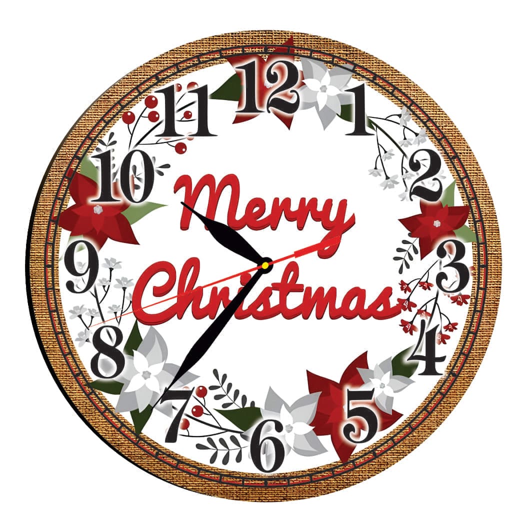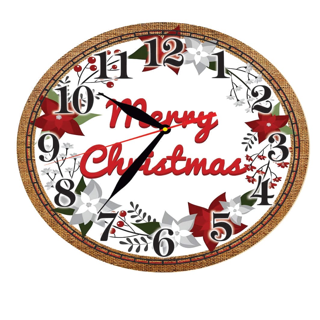 Ceas Craciun , Lemn, 40cm, Multicolor, CCRUV007