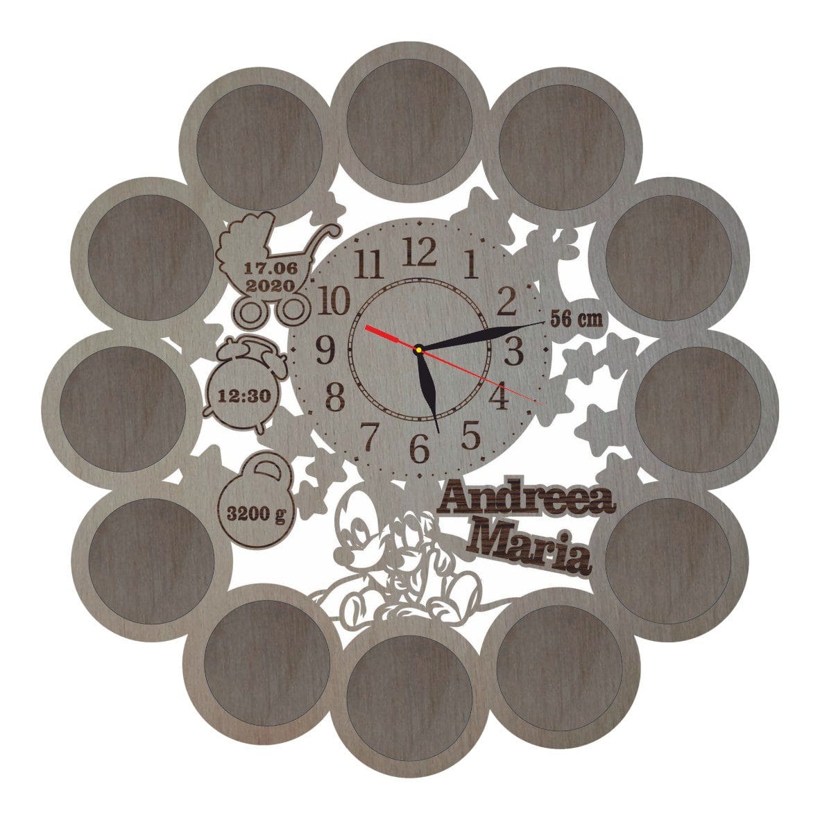 Ceas Disney Mickey Mouse,12 Rame foto, Lemn, 40 cm, CD017