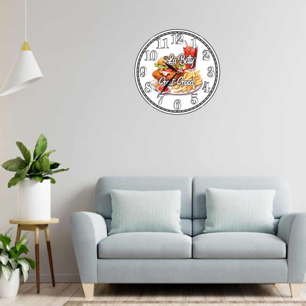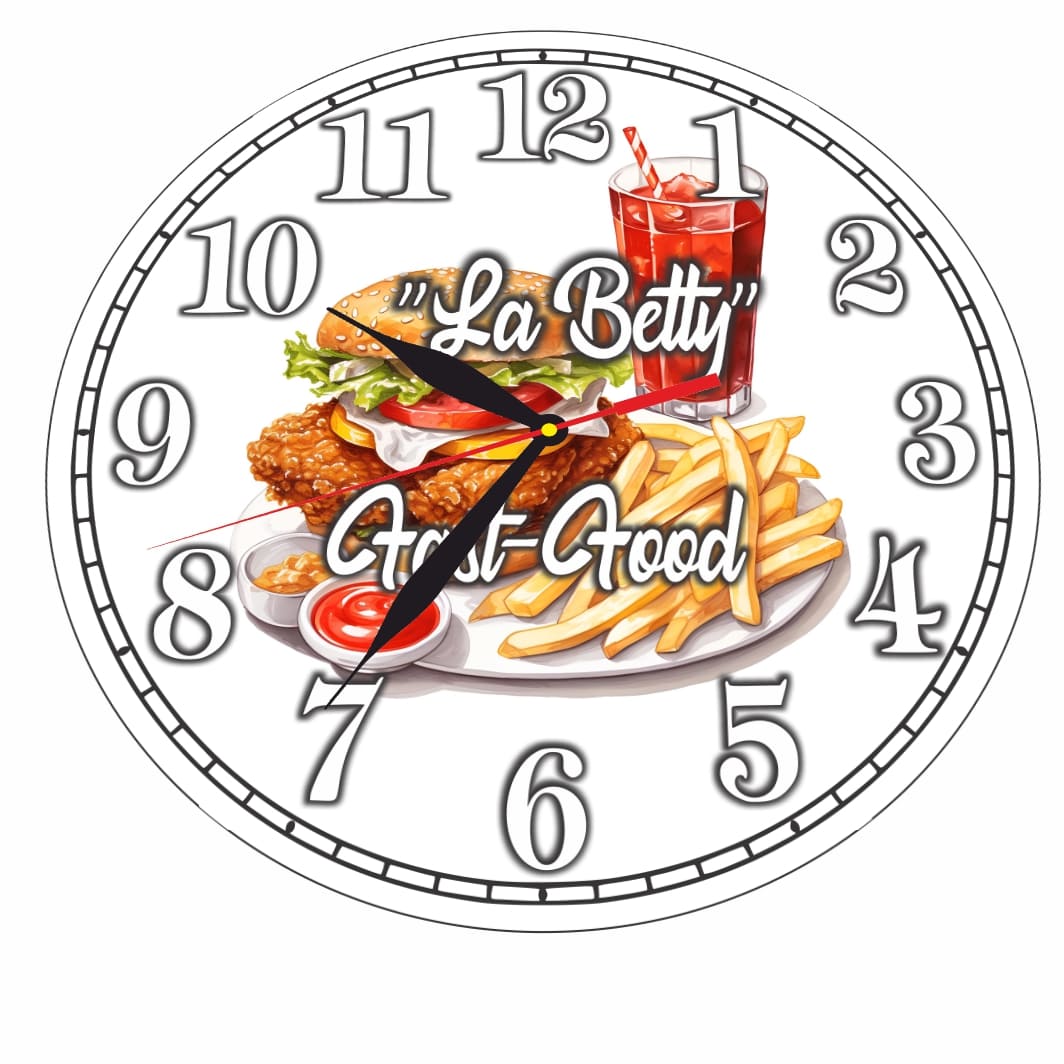 Ceas Fast-Food, Personalizat, Lemn, 40 cm, CMSUV093