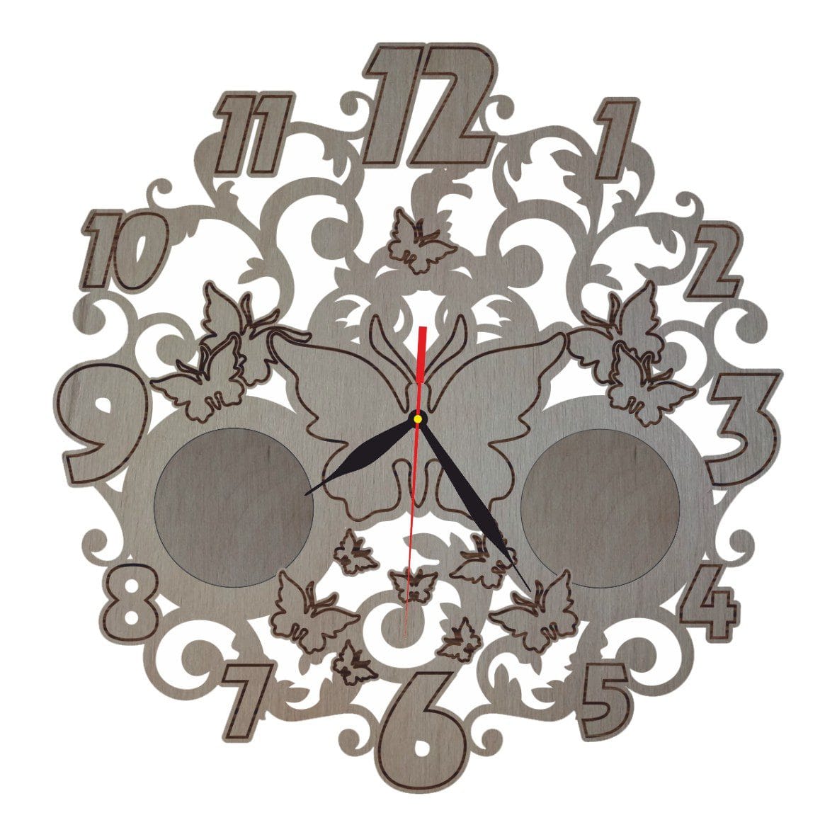 Ceas Fluturi, 2 Rame, Lemn, 40cm, CU014