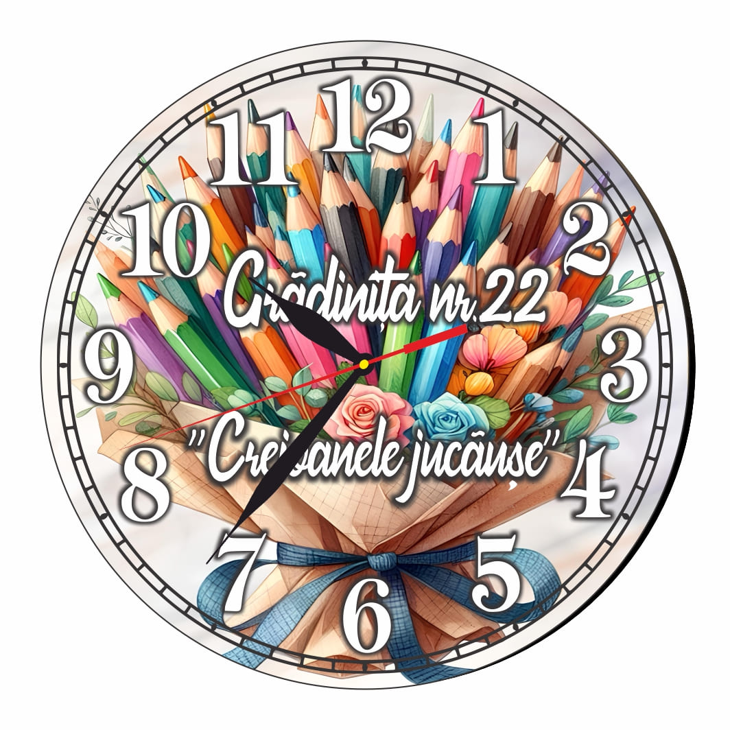 Ceas Gradinita, Scoala, Personalizat, Lemn, 40 cm, CMSUV086