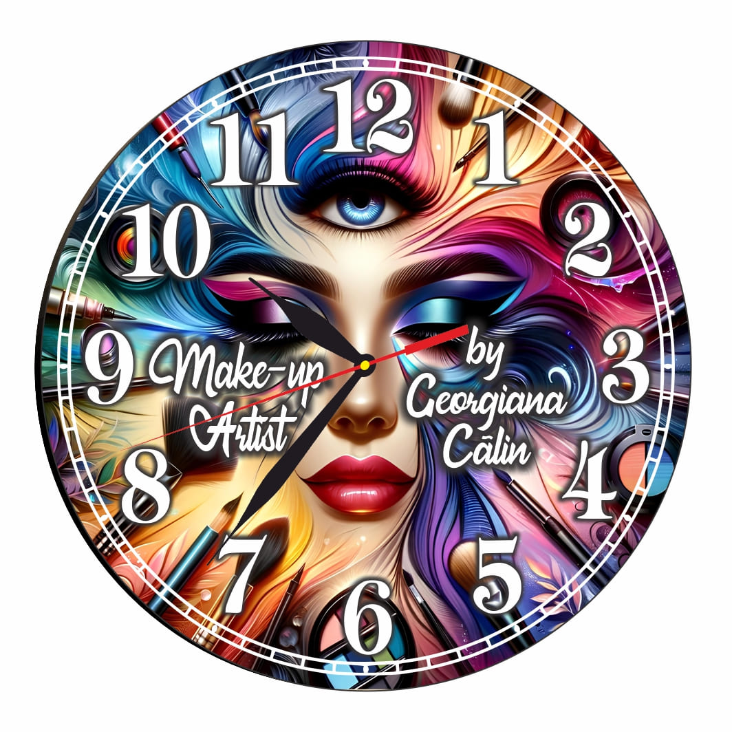 Ceas Make-Up Artist, Personalizat, Lemn, 40 cm, CMSUV004