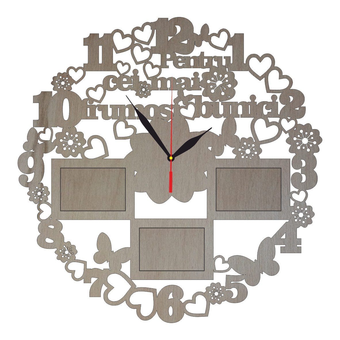Fii primul care scrii o recenzie pentru „Ceas personalizat Bunici, 3 Rame Foto, Lemn, 40 cm, CMB013”
