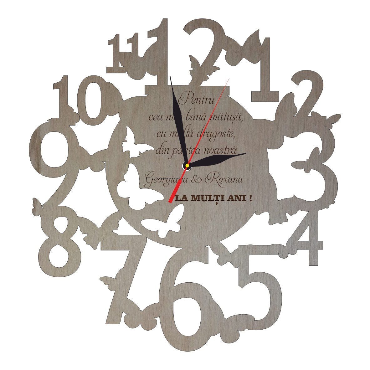 Ceas Personalizat Fluturasi, Lemn, 40cm, CMT001