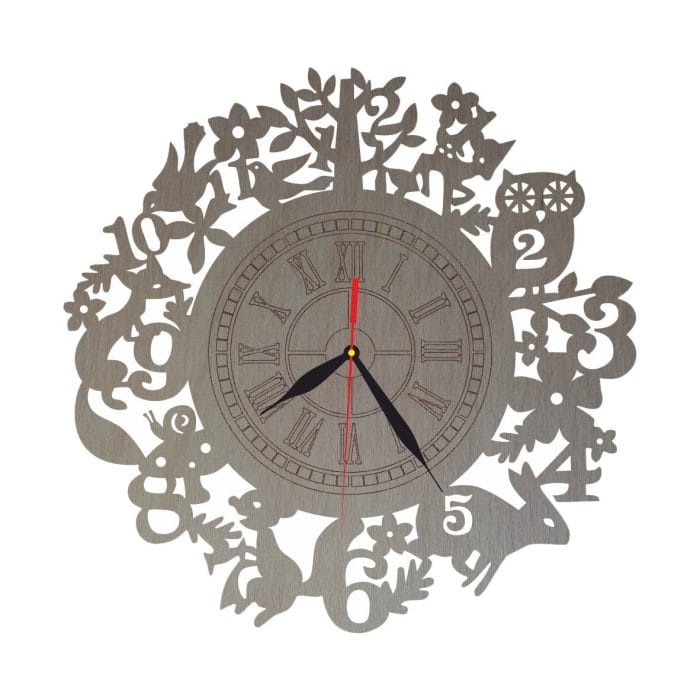 Transformă camera copilului într-un spaţiu de poveste cu acest ceas personalizat din lemn, model „Animaluțe” — o piesă decorativă de impact care adaugă un plus de farmec și originalitate. Diametrul de 40 cm oferă un impact vizual puternic și face ca ceasul să fie ușor de citit chiar și de la distanță. Design-ul jucăuș, cu ilustraţii de animale, este ideal pentru camere de copii, grădiniţe sau cadouri tematice. Mecanismul este inclus și montat — astfel ceasul e gata de funcționare imediat, alimentat cu o baterie AA (nu este inclusă). Culoarea naturală a lemnului adaugă un aer cald și autentic, potrivit pentru un cadou personalizat și memorabil.