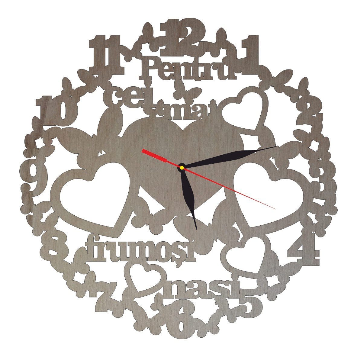 Ceas personalizat din lemn, cu mesaj pentru Nasi.