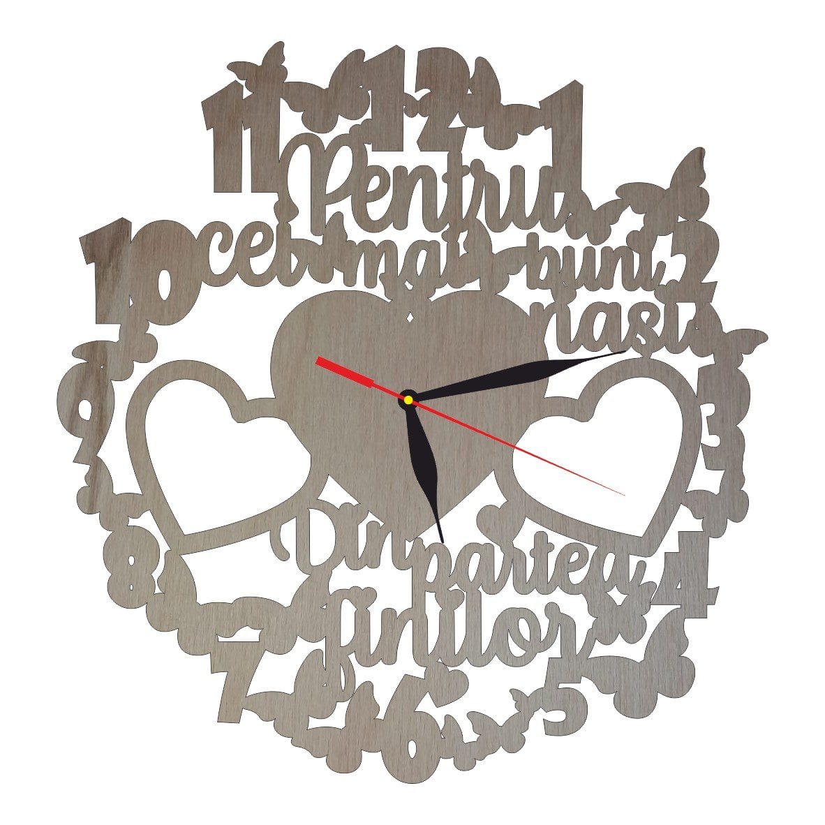 Ceas personalizat din lemn, cu mesaj pentru Nasi.