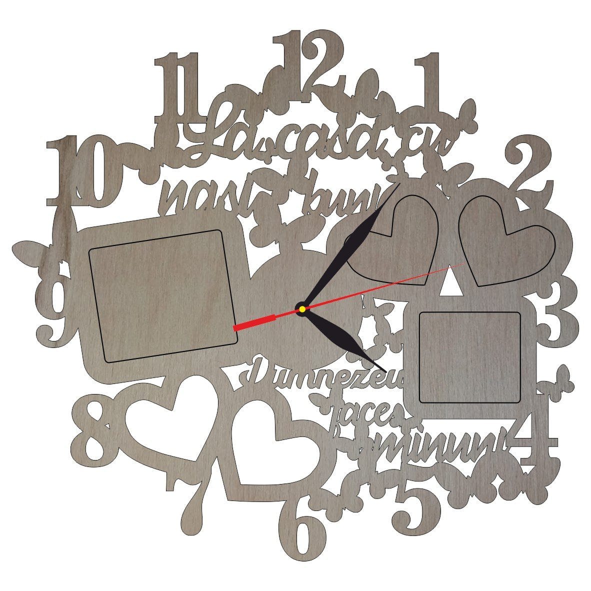 Ceas personalizat din lemn cu diametrul de 40 cm.