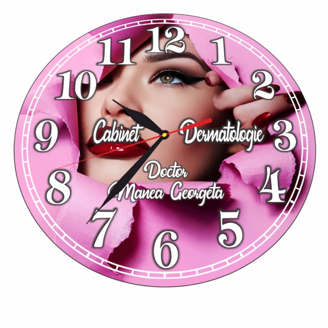 Ceas personalizat pentru Cabinet Dermatologie, Lemn, 40 cm, CDRUV027 Prețul inițial a fost: 79,99 lei.Prețul curent este: 54,99 lei.